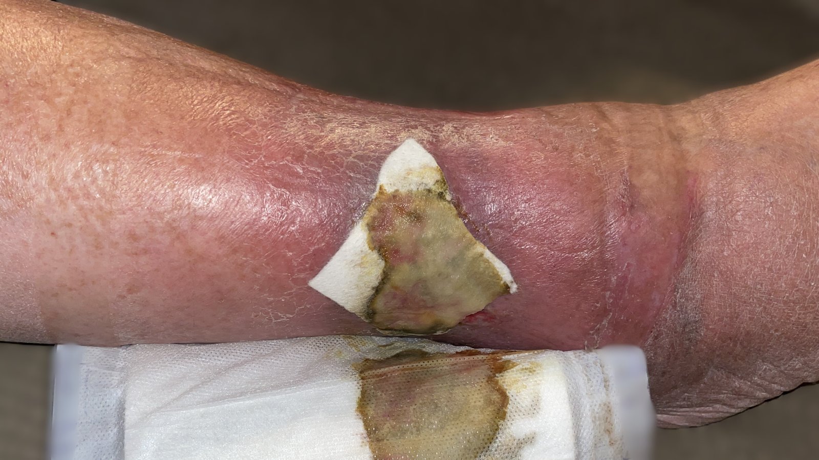 Bild 2: Wundheilungsstörung in der Leiste, lokal infiziert