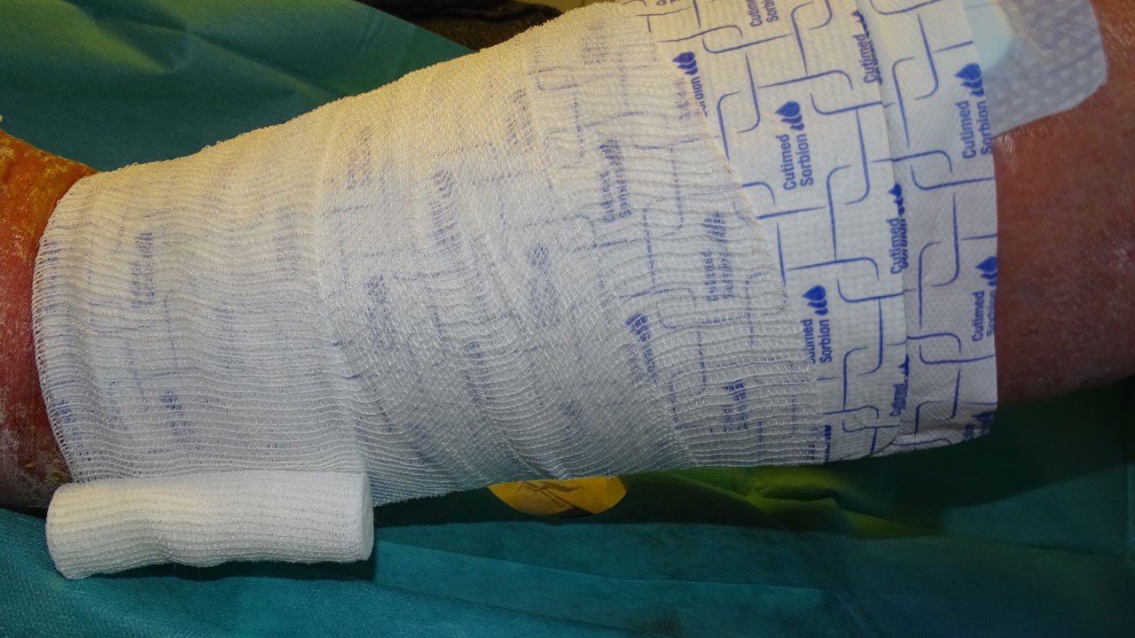 Bild 2: Postoperativer Kompressionsverband vor Fixierung