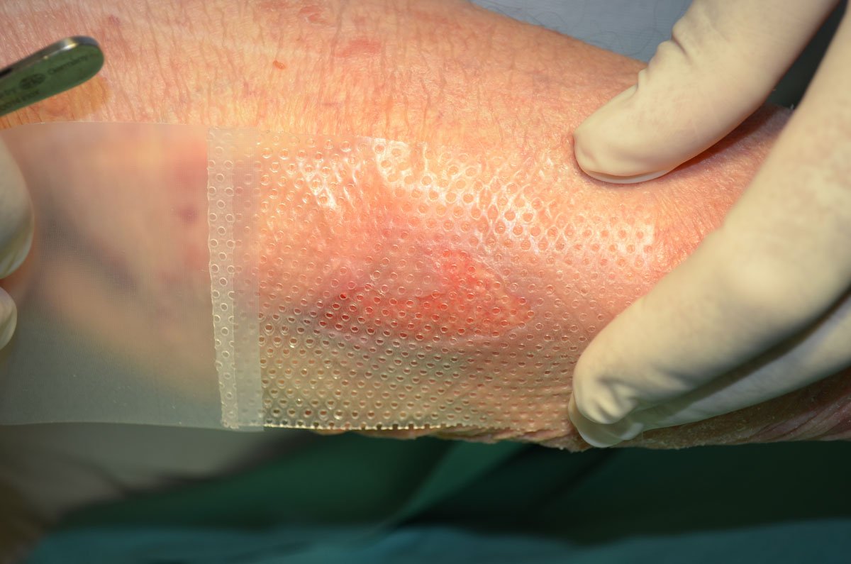 Nicht anzuwenden bei infizierten Wunden. Bei allen perforierten Silikon-Wundauflagen ist darauf zu achten, dass es zu keiner Überlappung des Materials kommt, da sonst der vertikale Durchtritt des Exsudates in den Sekundärverband nicht mehr gewährleistet ist. Der Verband kann ggf. zugeschnitten oder Pore auf Pore platziert werden. Mepitel One kann in Kombination mit einem Antiseptikum auf kritisch kolonisierten und infizierten Wunden eingesetzt werden.
