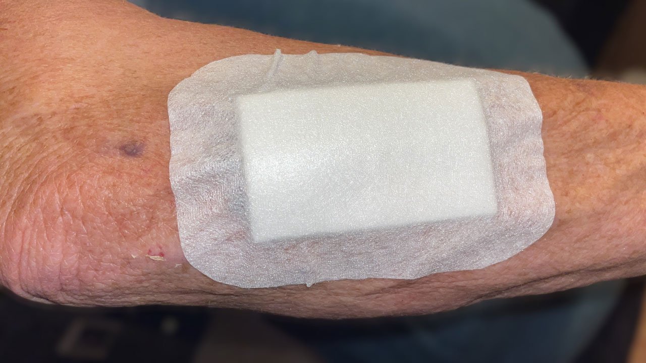 Folienverbände nicht auf kritisch kolonisierten und infizierten Wunden und höherer Exsudation anwenden.